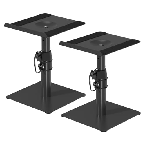 Suptek Universella högtalarfötter, fristående högtalarfäste för skrivbord, 9,6 x 8,8 tums brickor, höjd- och lutningsjustering, universella ljudstöd, set om 2, svart, SDM001T