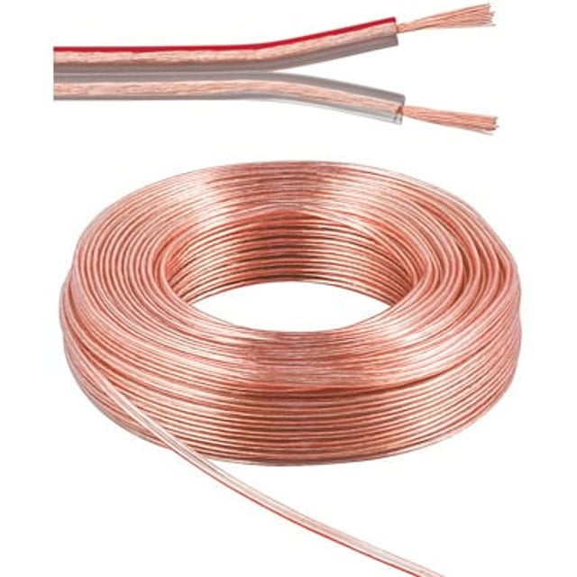 Högtalarkabel 25 m – 2 x 0,75 mm² – 100% CCA koppar; ljudkabel – transparent