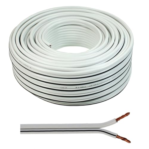 deleyCON 25m Högtalarkabel 2x 0,75mm² Boxkabel CCA Kopparöverdraget Aluminium 2x24x0,20mm Litz Polaritetsmarkering - Vit