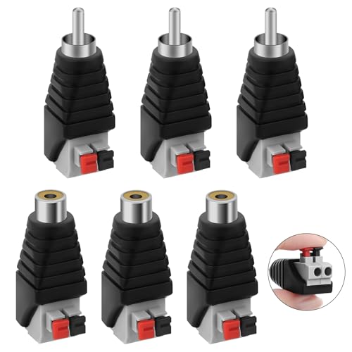 AXFEE 6 stycken RCA-kontakter, RAC-till högtalaradapter, lödbar RCA-kontakt, högtalarkontakt, RCA-kontakt skruvbar, för AV video ljudsignalöverföring (3 stycken kontakter och 3 stycken uttag)