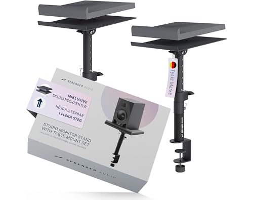 Sprenger Audio Högtalarställ med Bordsfäste – Lutningsbar ±20°, upp till 28 kg – Inkl. Skumdämpare – Stabil & Robust – för Studio, Skrivbord & DJ-bord - Svart