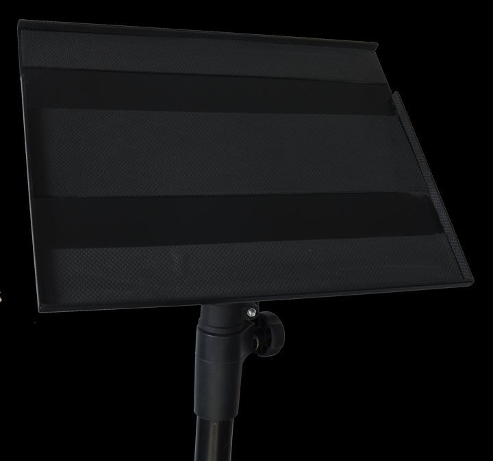 Vinklat högtalarställ i metall med lutning och vibrationsdämpning - Svart