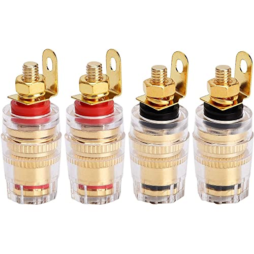 Högtalarbindningsstolpe, ASHATA-högtalarterminal 2 st svart och röd svetsning kopparhögtalare förstärkare terminal för 4 mm banankontakt