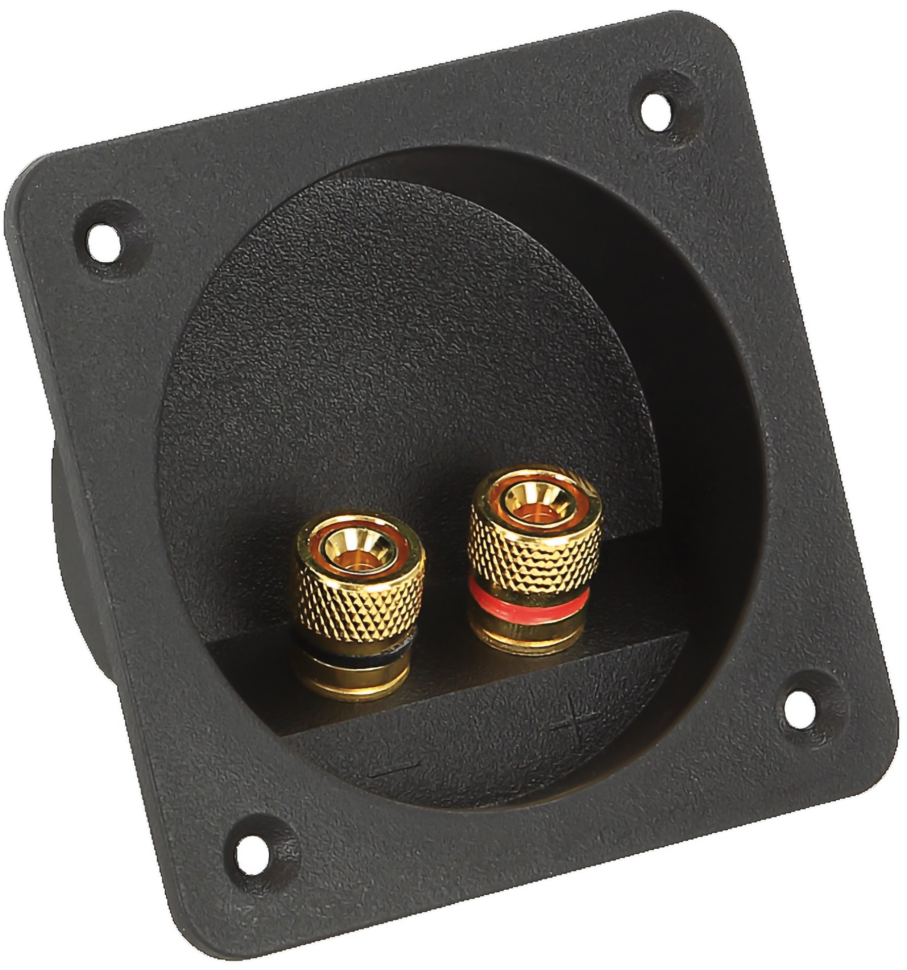 Högtalarterminal, 2 kontakter, fyrkantig 76 x 76 mm