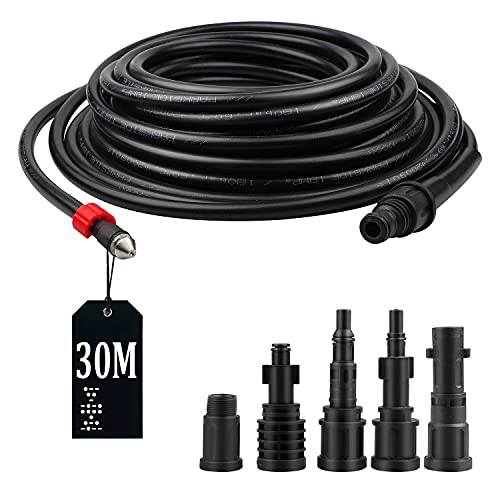 SWAWIS Rörrengöringsslang, 30 m, 180 bar, 60 °C, rörrengöringsset inkl. 5 adaptrar för högtryckstvätt från Kärcher/Lavor/Interpump/Bosch, rörrengöringsslang för högtryckstvätt