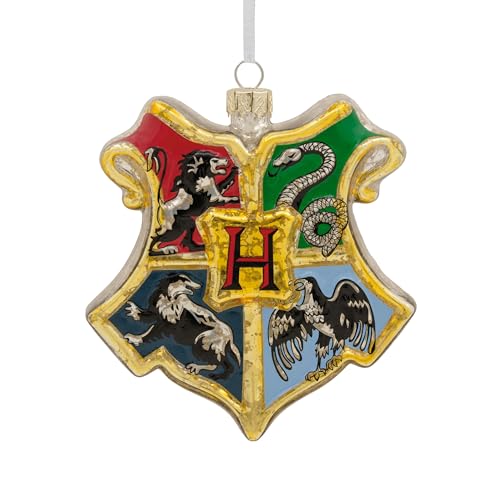 Hallmark Hogwarts Crest glasprydnad, Harry Potter-träddekoration, hängande glasprydnad, julhängande prydnad, gåvor till jul, Gryffindor, Slytherin, Ravenclaw, Hufflepuff