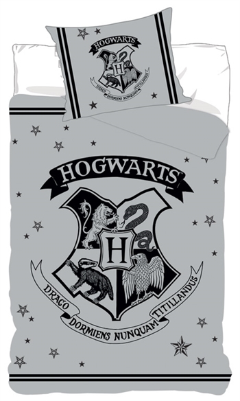 Harry Potter sengetøy av flanell 140x200 cm - Sengesett med Hogwarts logo - 100% bomull