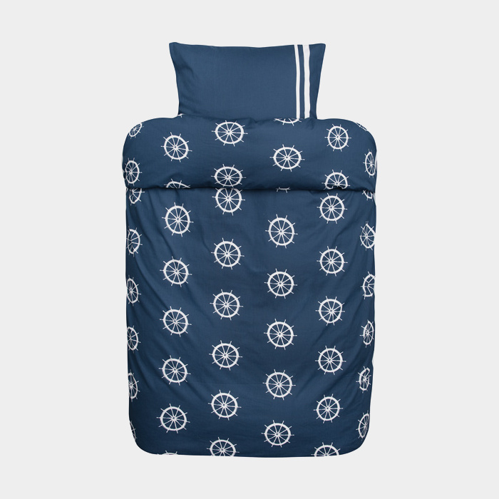 Bäddset båt Höie, 140 x 200 cm / 60 x 63 cm, marinblå/vit, påslakan + örngott