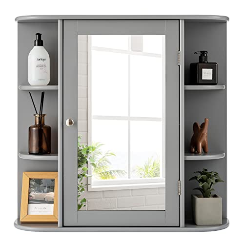 LIFEZEAL Väggmonterat badrumsskåp med spegel, hängande toalettskåp i MDF, hyllor med justerbar höjd, förvaringsskåp toalett 66 x 16,5 x 63 cm (grå)