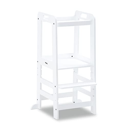 Hauck inlärningstorn Learn N Explore, FSC®-certifierat bokträ, justerbar höjd, stabilt robust, Montessori inlärningstorn från 1 år för köksbord badrum (vit)
