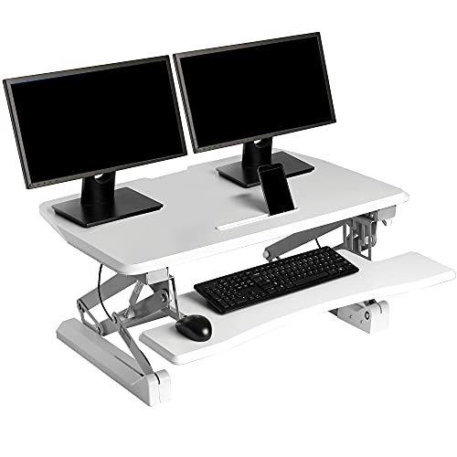 Vivo Justerbar höjd i stående skrivbord sitta vid Stare Spring till Gas Riser Converter 32" Workstation Bredd Tabell Passar Dubbel Monitor (Desk-v000k)