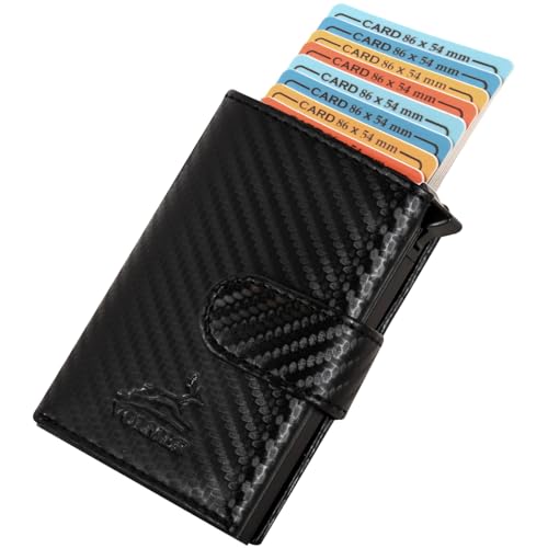 Fa.Volmer ® POP-UP kortfodral av äkta läder med/utan myntfack för män och kvinnor | max. 11 kort | RFID-skydd | plånbok VO24/31, Zip Carbon, 6 x 9,5 x 1,5cm, Samtida