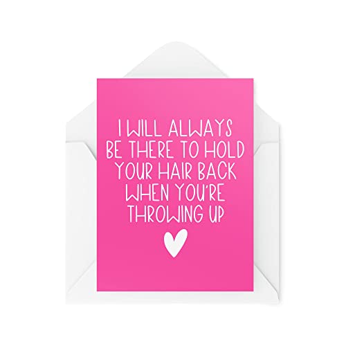 Roliga kort | 'I Will Always Be There To Hold Your Hair Back When You're Throwing Up Card | Bestie Girlfriend Wife Cute skämt Banter | CBH1060
