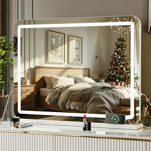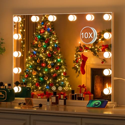 MAMIZO Sminkspegel med belysning,80x62cm,med USB och type-C, stor Hollywood-spegel,10 x förstoringsglas, 3 färgtemperaturer, väggspegel, bordsspegel, med pekskärmskontroll,kosmetisk spegel
