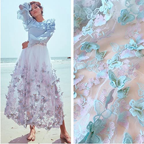 51" Width 3D Butterfly Floral Flower Embroidered Tulle Lace Fabric Mesh Lace Fabric by The Yard for DIY Handmade Clothing Wedding Dress Home Decor (3 Yard, Light Blue)