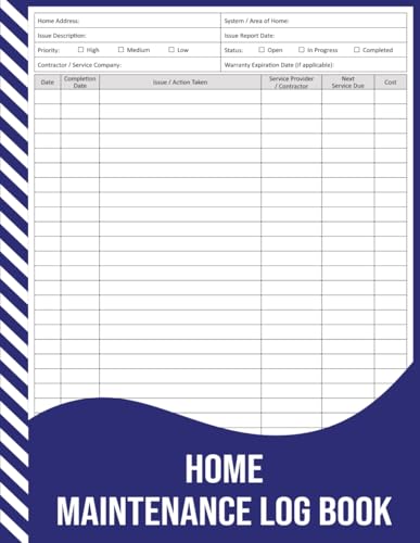 Home Maintenance Log Book: Basic Home Repair & Service Log, Record Repairs, Maintenance Tasks, Costs & Contractor Info, For Homeowners, Renters, and Property Managers