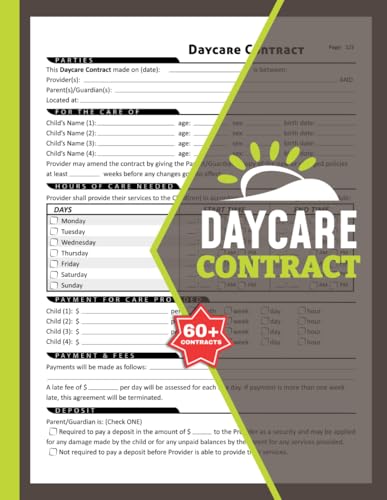 Daycare Contract: 60+ Childcare Service Agreement Forms Between Provider & Parent/Guardian for Centers, In-home & Preschools | 120 Two-Sided Pages