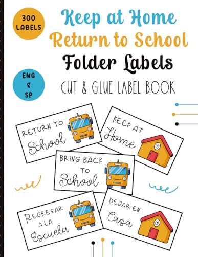 Keep at Home Return to School Folder Labels: 300 Cut & Glue Bilingual English and Spanish Classroom Student Homework Folder Labels