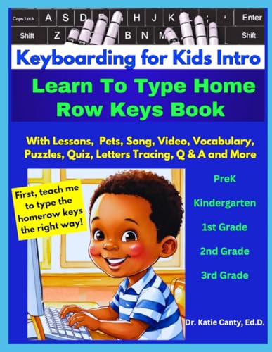 Keyboarding for Kids Intro Learn To Type Home Row Keys Book: With Lesson, Pets, Song, Video, Vocabulary, Puzzles, Quiz, Letters Tracing, Q & A and More
