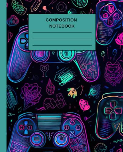 Composition Notebook – Neon Video Game Controller (Wide Ruled): Fun Gamer-Themed Writing Journal for School or Home, Perfect for Boys, Girls, and Teens