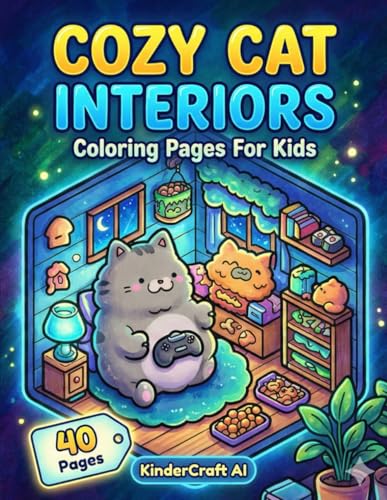 COZY CAT INTERIORS: An Isometric Coloring Book for Adults and Teens | 40 Adorable Tiny Rooms Featuring Cute Gamer Cats, Video Games, and Kawaii Home Decor for Relaxation (Bold and Easy Designs)