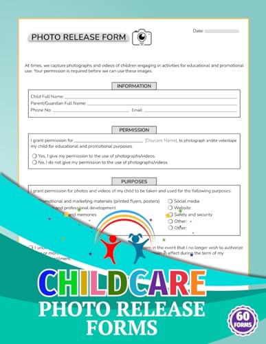 Daycare Photo Release Forms: Photo Video Permission Consent Logbook for Preschool and Home Childcare Providers | 60 Media Agreement Forms | 120 Single-Sided Pages