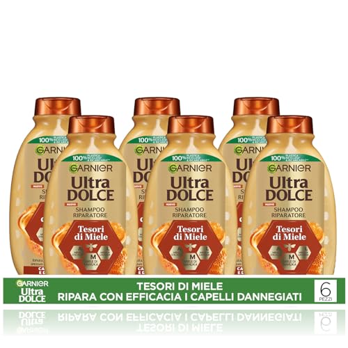 Garnier Ultra Sweet Honey Treasures, Multi Pack x6 Shampoo, 94% Naturligt ursprung, Skadat hår, Silikonfritt, 300ml