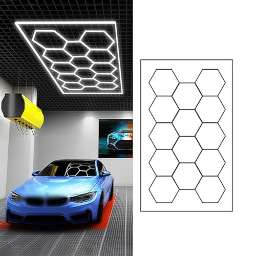 LED Car Garage Light, Ultra-Bright 672w Hexagon Taklampa 6500k Färgtemperatur Justerbar Honeycomb Light IP54-klassad, För bildetaljer, garage och gym