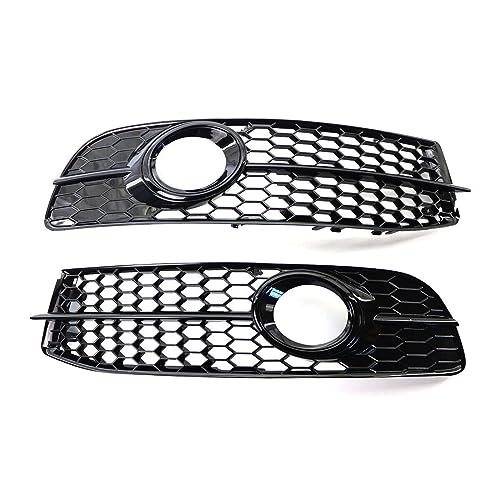 2st Bil Front Glänsande Svart Honeycomb Mesh Stötfångare Dimljus Lampa Grill Kompatibel for Audi A6 SLine S-Line Bumper C8 S6 2019-2022(Glossy Black)