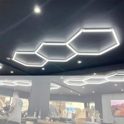 128W 6500K 3 honeycomb hexagon-taklampor, sexkantiga LED-lampor för garage, gym, källare, lager, bilbutiker