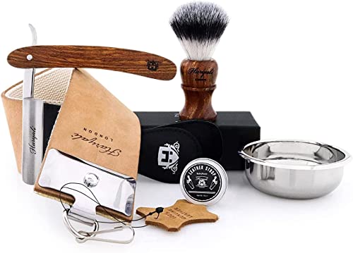 Haryali London rakkit – rakborste set – hållbart rakset – trä – rakborste – rak rakkniv – rakskål – läderslag – honing compound – för jämn rakning