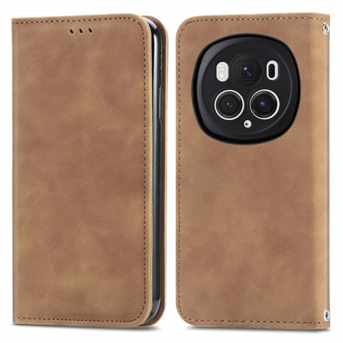 Cracedily Skal för Honor Magic 6 Pro Case, Läderfodral Plånbok Skal, [TPU-skal] [Kortplatser] [Kickstand] stöttåligt folio flipfodral Wallet Leather Cover för Honor Magic 6 Pro, Brun