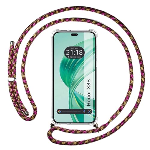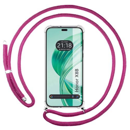 Transparent hängande fodral för Huawei Honor X8b med rosa snöre fuchsia