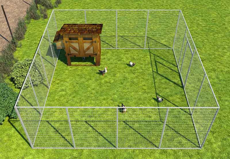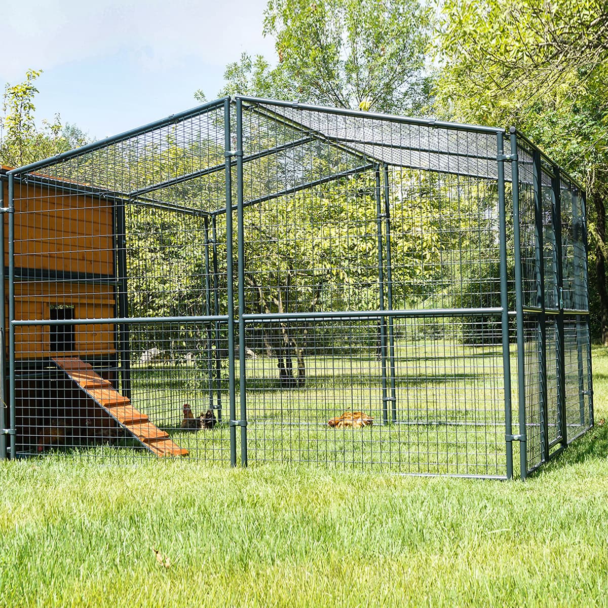 Hönsgård/voljär 3×4×2 m i metall med säkerhetslås & vattentätt PE-tak – för höns, kaniner & smådjur