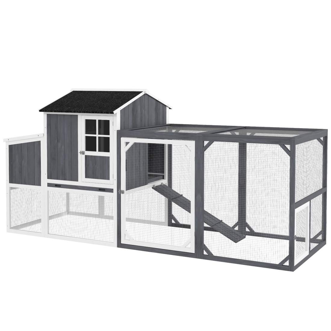 Hönshus med fågelholk & hönsgård, grått, hus med utdragbar bottenlåda