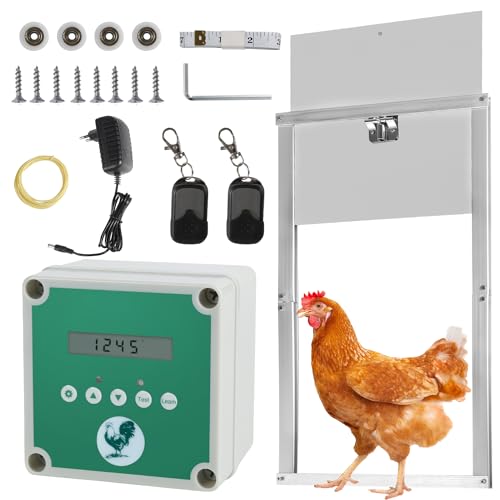 Ansobea Automatisk hönsdörr, skjutreglage 30 x 30 cm hönslucka, aluminium hönsdörr med ljussensor och tidsstyrning manuell hönshusdörr med flytande kristalldisplay för säker höna