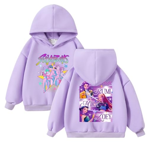 Söt tjej hoodie, k-pop jägare oversized hoodie vår/höst mode barn hooded tröja,Purple,130cm