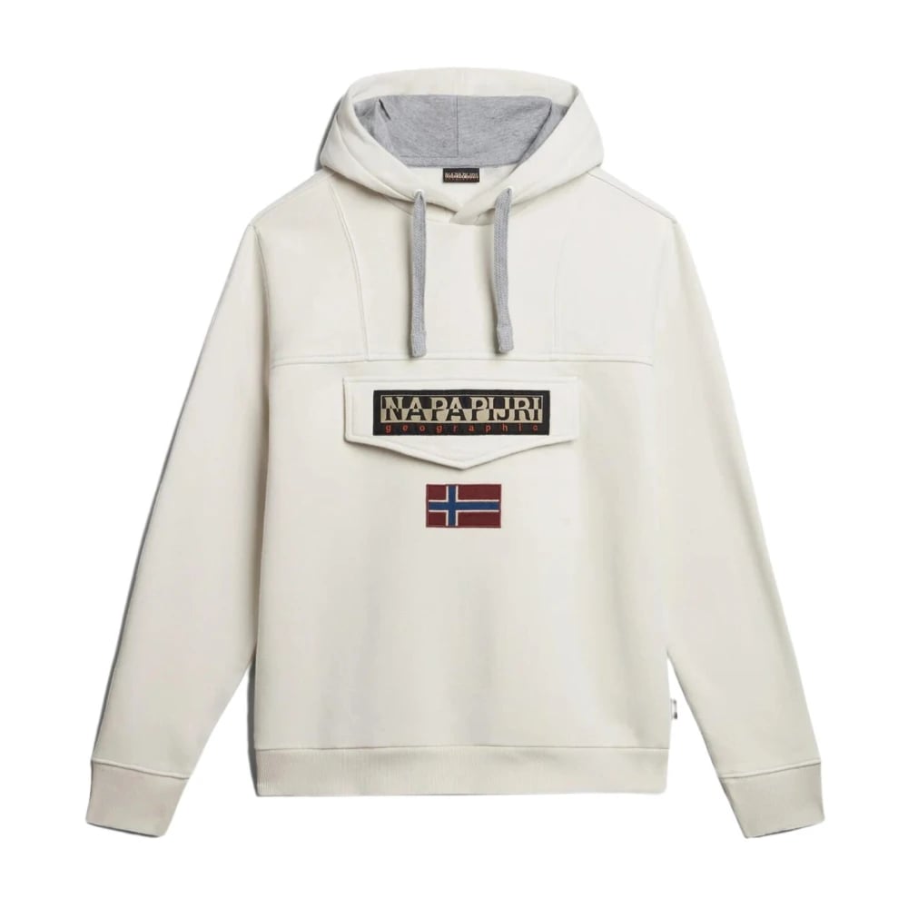 Napapijri, Sweatshirts & Hoodies , Herr, XL, Hoodie med Flag Logo Vit