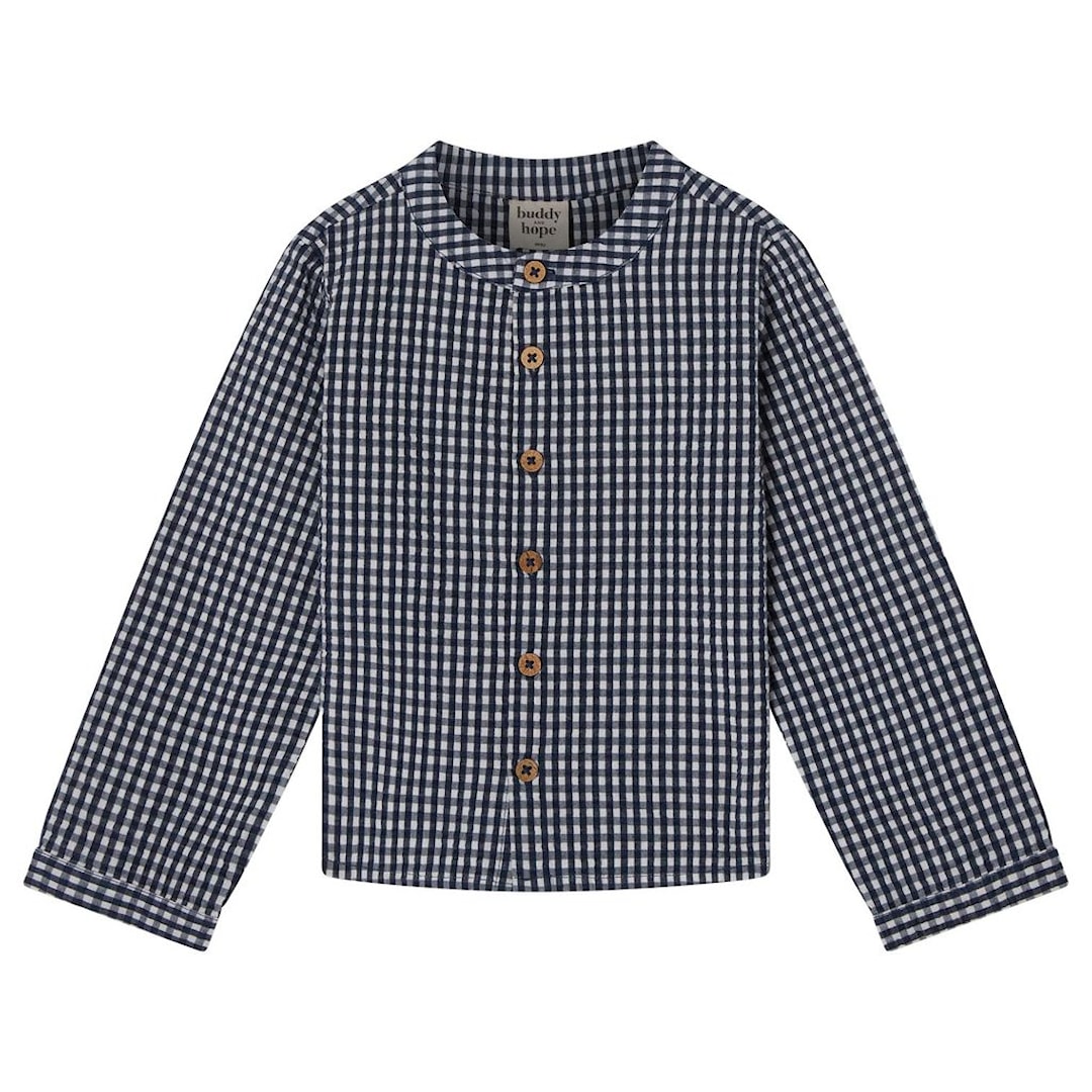 Buddy & Hope August LS Skjorta Seersucker Navy Check 98/104 cm Marinblå Rutor 98/104 cm Unisex