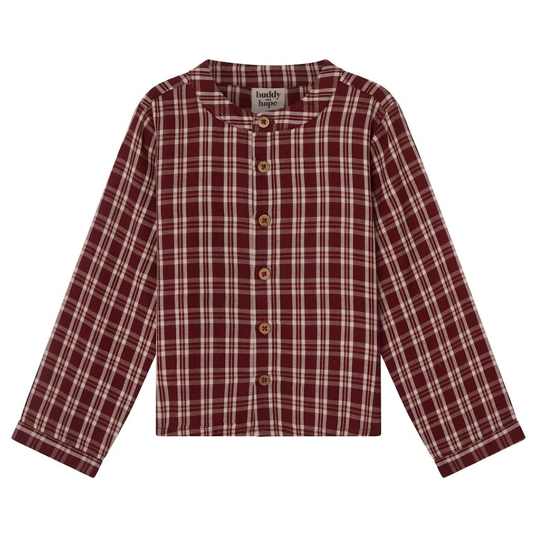 Buddy & Hope August-rutig skjorta i Christmas Red 62/68 cm Röd Rutor 62/68 cm unisex