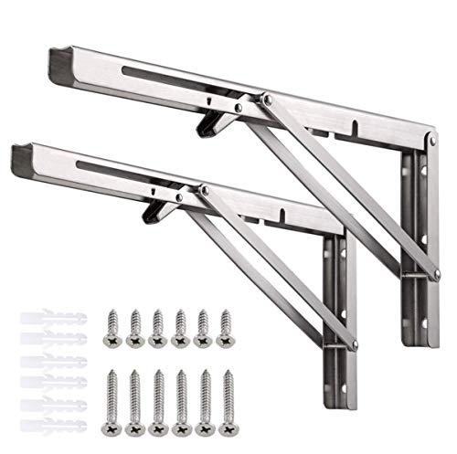 Fällbara hyllfästen 35 cm, kraftig rostfritt stål hopfällbar gör-det-själv väggmonterad hyllfäste, maximal belastning: 68 kg, för bord arbetsbänk utrymmesbesparing, paket med 2 (35 cm, rostfritt stål)