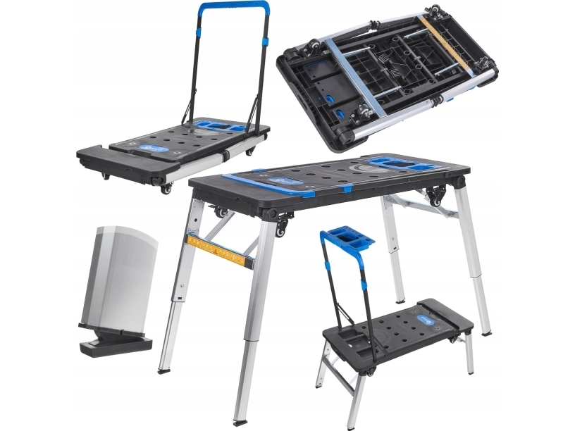 Fuxtec FX-WB 5-i-1 hopfällbar arbetsbänk - multifunktionell användning som skateboard/sågstaffli / arbetsbord eller byggnadsställningar - integrerade eluttag