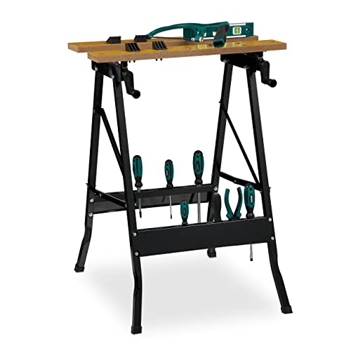 Relaxdays Arbetsbänk, hopfällbar upp till 100 kg, justerbart arbetsbord, 4 spännbackar, HBT 75,5 x 56,5 x 62 cm, natur/svart