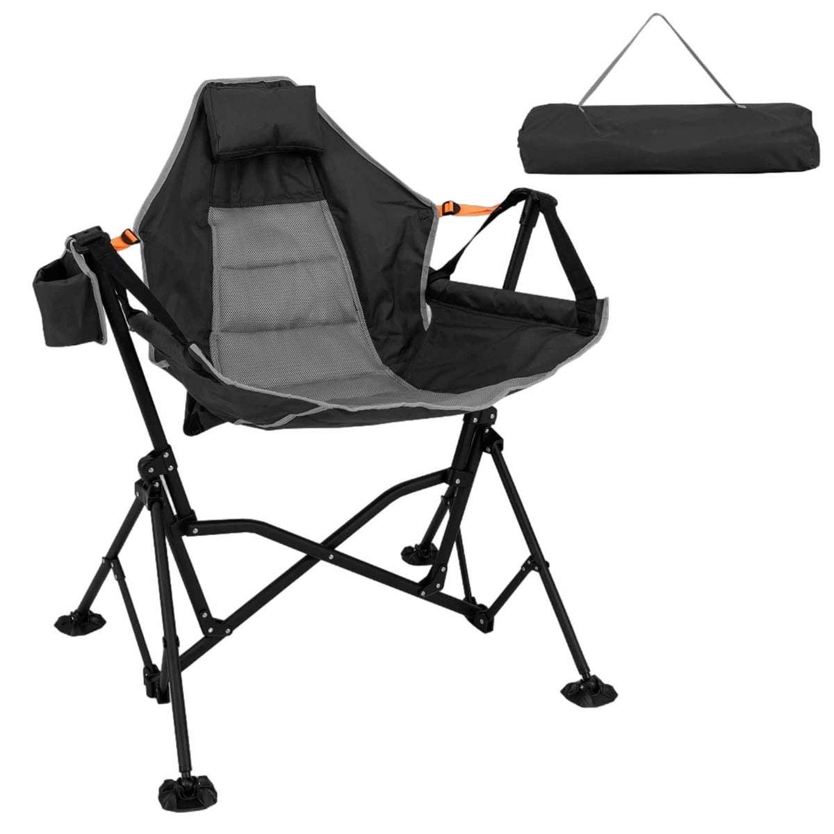 Hopfällbar campingstol med gungfunktion & mugghållare & sidoficka fiskestol