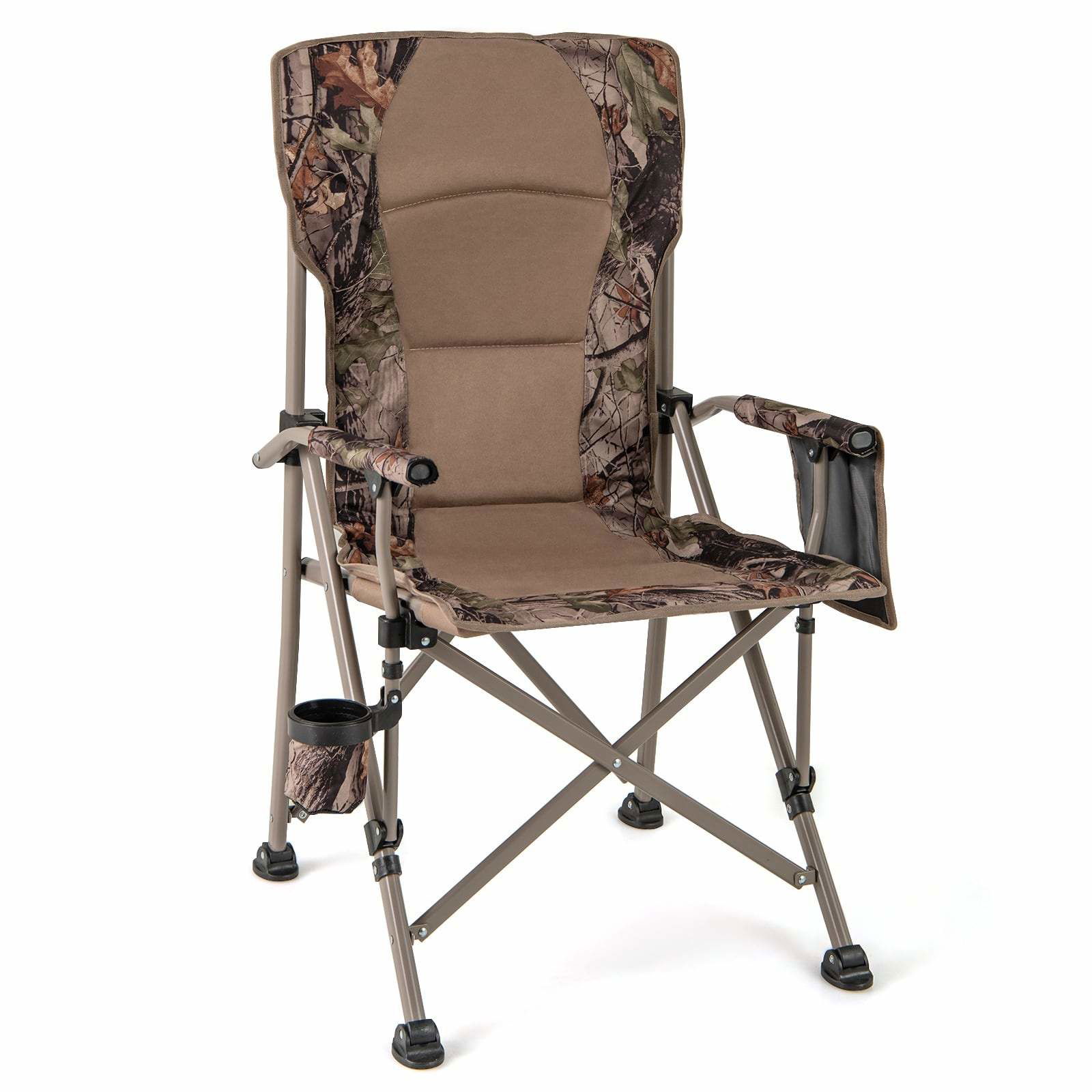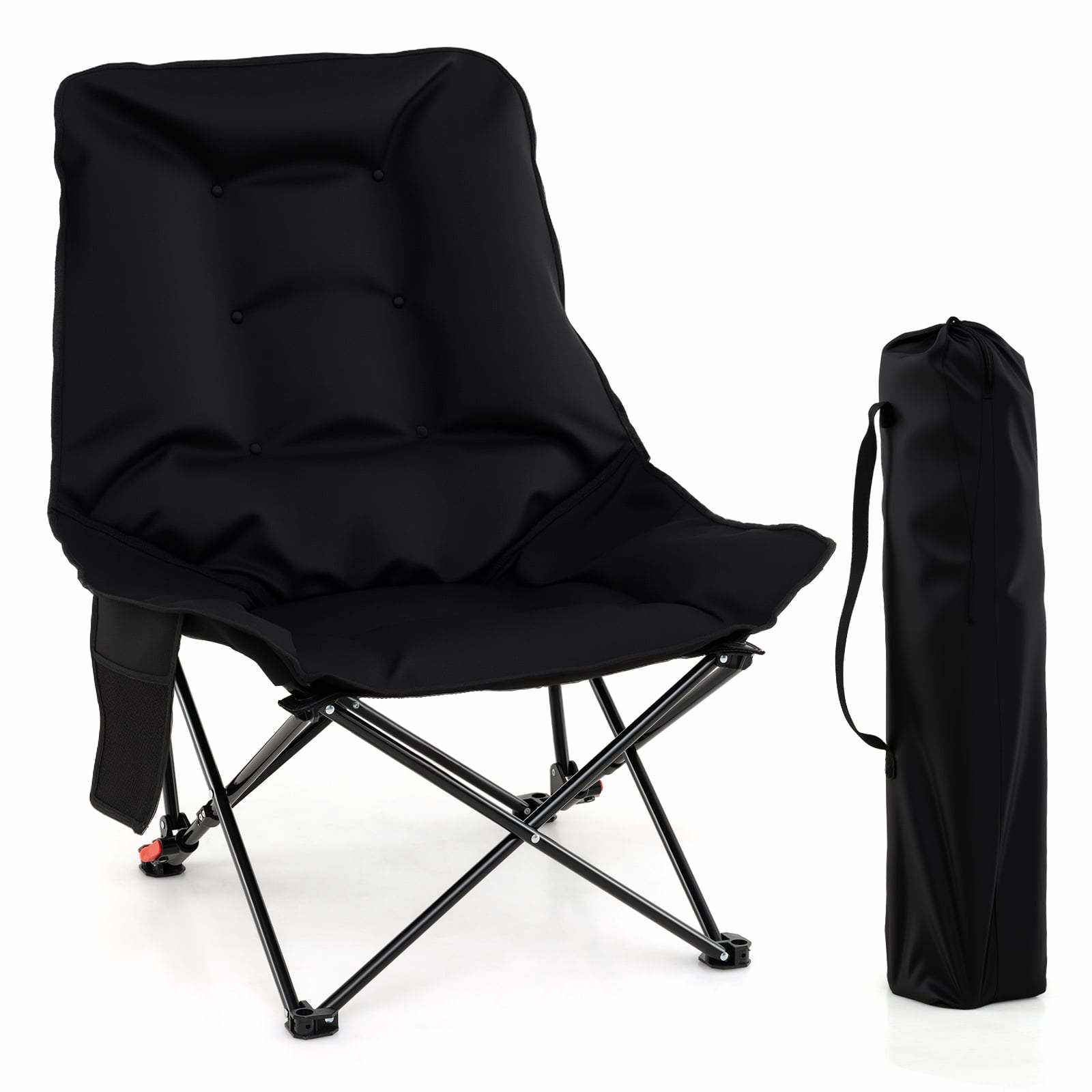 Hopfällbar campingstol med mugghållare och sidoficka, 160 kg kapacitet