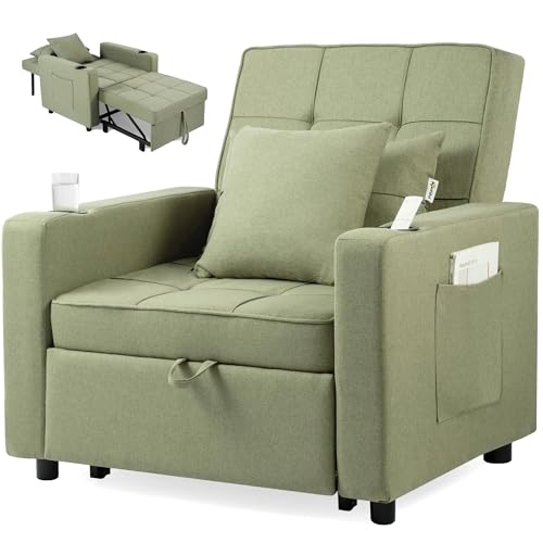 Xbro Sovfåtölj 3-i-1 Bäddfåtölj med Justerbart Ryggstöd, Hopfällbar Fåtölj med Bäddfunktion, Ficka & Kudde, Liten Bäddsoffa för Hem