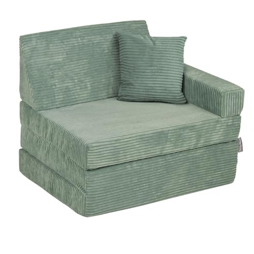 KiddyMoon Skumsoffa för barn multifunktionell madrass fåtölj barn vikbar säng hopfällbar småbarn soffa stol för lekrum sovrum vardagsrum, grön