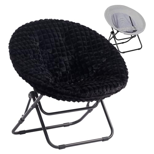 HollyHOME Fällbar tefat stol bekväm månstol hopfällbar fåtölj runda lässtolar för vardagsrum och sovrum bärbar, plysch svart