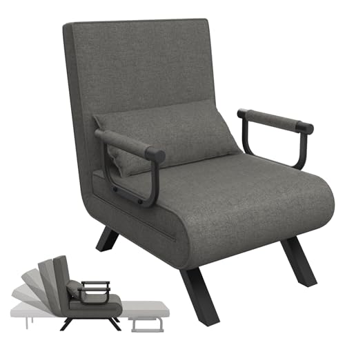 ACXIN 3-i-1 bäddsoffa, mörkgrå gästsäng kan belastas upp till 150 kg, sovfåtölj, hopfällbar fåtölj med sängfunktion, bäddsäng för vardagsrum, sovrum, balkong