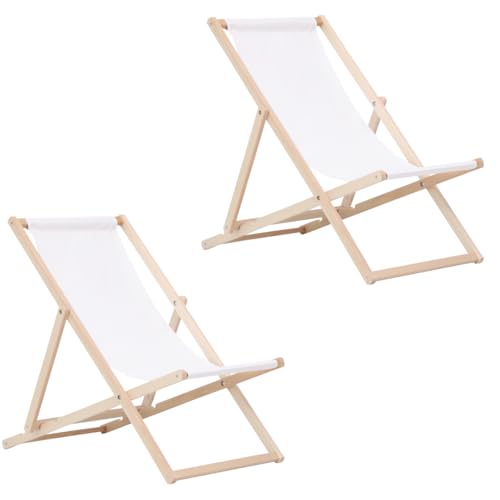 Vit vikbar solstol av massivt trä, 2 st, hopfällbar fåtölj med justerbart ryggstöd, maxvikt 120 kg, perfekt för trädgård och balkong